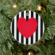 Rotes Herz auf schwarz-weiß gestreiftem Hintergrund