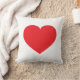 Dieses Kissen weist auf der einen Seite ein formschönes rotes Herz und auf der anderen Seite ein sich wiederholendes Muster roter Herzen auf.