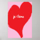 Rotes Herz mit je t’aime-Text auf rosa Hintergrund Poster