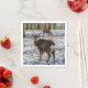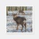Wilde Rotwild in einer verschneiten Waldlandschaft, bei der der Hof direkt auf die Kamera schaut.
