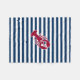 Ein roter Hummer mit Ihrem Monogramm oder Text-Set auf einem Marineblau- und weißengestreiften Hintergrund. Ein perfekter Entwurf für einen Strand oder ein Sommerhaus durch den Ozean, Hummer backen auf dem Ufer, den Wiedervereinigungen oder gerade dem täglichen Leben. Klicken Sie an das Colorfulgalshop Logo unten für mehr Spaßseeentwürfe.