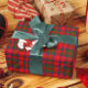 Hübsche Weihnachtsfarben mit dem traditionellen schottischen Tartan-Karomuster. Ein stilisierter Scottie-Hund mit süßer Schleife und Schal überbringt Grüße mit "Nollaig Chridheil!", was eine frohe Weihnachtsbotschaft in Schottland ist.