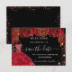 Eine gmädchenhafte und trendige Save the Date-Karte für eine Quinceañera, 15. Geburtstagsfeier. Schwarze rote Rosen, rote Imitate Glitzer Glitzern und rotes Kleid. Personalisieren und fügen Sie Datum und Name/Alter hinzu. Der Text: Save the Date ist mit einem großen angesagten, handgeschriebenen Stilskript geschrieben.