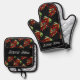 Dieses Ofenhalter-Set mit Mitt und Topf zeigt ein lebendiges rotes Pfeffermuster. Vor schwarzem Hintergrund ist es ideal, um Party oder Küchen eine mediterrane Touch hinzuzufügen. Passen Sie sie heute mit einem Namen an.