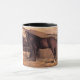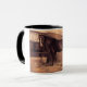 Dieses Design zeigt ein Gemälde des französischen Impressionisten Gustave Caillebotte (1848-1894). Es zeigt ein Pferd mit einer in einem Stall stehenden Bucht. Das Pferd ist braun mit weißen Markierungen auf seinem Kopf und den Füßen. Er hat einen langen Schwanz, der zwischen seinen Hinterbeinen herabklingt.