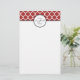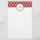 Rotes und weißes quatrefoil Muster mit grauem Monogramm.