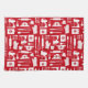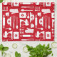 Rotes Retro Backküchenhandtuch mit niedlichem Retro-Muster, Backausstattung und einfachen Retro-Blume in Rot und Weiß. Das Muster kann auf dem Küchentuch größer oder kleiner gemacht werden.