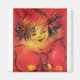 Farbiges, skurriles, lebendiges, künstlerisches Clownportrait mit extravagantem rotem Band, Aquarellmalerei in Rot, Gelb, Braun, inspiriert vom Karneval von Venedig. Elegantes Design, leicht mit Ihren Initialen und Ihrem eigenen Text zu gestalten.
