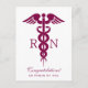 Herzlichen Glückwunsch Postcard für einen Diplom-Diplom mit einem roten Cadaceus-Symbol mit den Buchstaben R N auf beiden Seiten. Das einfache minimalistische Design.