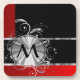 Rotes schwarzes und silbernes Monogramm Untersetzer