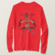 Das Shirt ist in Rot und lang Ärmeln mit einer Abbildung eines Mannes, der in einem traditionellen japanischen Kostüm eintritt. Die Unterschrift sagt Ta Da.