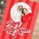 Dieses Design verfügt über eine frohe Weihnachten, rot und grün, mit Retro-Typografie, ein Zwei-Foto-Template mit whimsical Skript Kalligrafie, glücklich neues Jahr, eine einzigartige, eine kreative, Urlaub Fotokarte