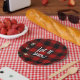Rotes und schwarzes Büffel - Schneeflocken lassen Pappteller