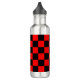 Magst du Wasserflaschen? Dieses hier hat ein rotes und schwarzes Schachbrettmuster