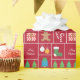 Ein Muster mit einigen Weihnachtssymbolen auf roten Rechtecken. Sie können Ihre eigenen Wörter redigieren und setzen. Frohe Weihnachten!