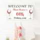 Red Wine Glass 60. Geburtstag Party Backdrop Banner. 60. Geburtstag Party Banner oder Hintergrund. Banner mit zwei abstrakten Weingläsern. Der Text ist in Schwarz und Rot gehalten und ist vollständig anpassbar - personalisieren Sie ihn mit Ihrem Namen und Alter. Sie können jeden Text auf dem Banner ändern.