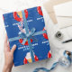Rotes weißes blaues Eiscreme-Pool-Party scherzt Sommer-Geburtstags-personalisiertes Verpackungs-Papier. Niedlicher Eiscremekegel in einem Poolfloss. Rote, weiße und blaue themed Pool-Partyversorgungen. www.SamAnnDesigns.com