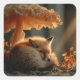 Rotfuchs schlafen unter dem riesigen Pilz Quadratischer Aufkleber