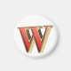 Roter Glasbuchstabe W mit glänzendem goldfarbenem Rahmen