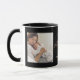 Diese hübsche Mutter-Tag-Foto-Tasse zeigt zum ersten Mal einen dunkelschwarzen Hintergrund mit Imitaten Rose Gold moderne Schrift Typografie, die "Erster Muttertag" sagt. Fügen Sie zwei Fotos von ihr und das Kind, mit Raum, um mit Namen und Jahr personalisieren.