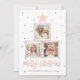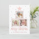 Einfache und moderne Frohe Weihnachtsskript Holiday Flachkarte verfügt über 3 Fotos mit einem Imitat Rose Gold Glitzer Stern und quadratische Rahmen auf einem pastellfarbenen Regenbogen Polka Punkte Muster Hintergrund