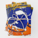 Abstrakt Expression enthält die Farben Mittelblau, Weiß, Dunkelorange, Oliven, Schwarz, Gold, Orange.