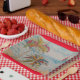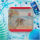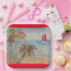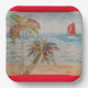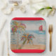 Rote Segel, die das Meer blau segeln, inmitten farbenprächtiger Palmen, die als gemischtes Kunstwerk geschaffen wurden.