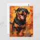 Ein farbiges Herbst- und Erntedank-Portrait eines Rottweilers.