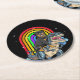 Rottweiler Riding Dinosaur T rex Rainbow Runder Pappuntersetzer