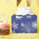 Rotwild-HäschenFox im Holz im Schnee auf blauer Geschenkpapier