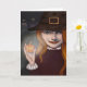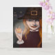 Eine schöne Hexe steht am Ende ihrer Einfahrt und beobachtet die glücklichen Kinder beim Trick oder bei der Behandlung in der Nachbarschaft. Sie hält ihren kleinen Jack O' Lantern in der Hand, um sie vor hinterhältigen Geistern behalten!