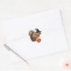 Fun Halloween-Aufkleber mit einem Eichhörnchen, das einen schwarzen Hexenhut trägt, der einen Jack-o-Laterne-Trick oder einen Eimer hält.