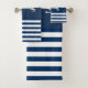Cette image présente une roue de bateau, une ancre sur un arrière - plan rayé bleu marine.