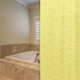 Coeur rouge sur arrière - plan jaune. Rideau de douche avec motif minimaliste.