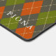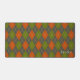 Modèle à carreaux rouge rustique et vert avec votre nom en bas à droite du tapis de bureau.