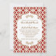 Tuile marocaine française élégante et belle inspirée épousant des invitations avec une tonalité rouge de répétition d'écarlate riche et une conception géométrique de motif de treillis d'or et des flourishes floraux hued d'or. Cet invitation classieux et luxe de mariage est parfait pour un mariage orienté de Marocain, de mille et une nuits ou d'Aladdin. Le dos des ces coutume, invitations de fantaisie de cadre et jolies, exotiques annonces de regard peut être personnalisé avec bientôt pour être le monogramme des jeunes mariés mariés et les noms sur le quatrefoil forment. Illustration et © Chrissy H. Studios, LLC de conception. Tous droits réservés.