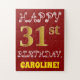 Cette conception amusante et simple de puzzle d'anniversaire comprend le message "HAPPY 31st BANTHDAY", avec le "31st" ayant une apparence de couleur fausse/imitation or. Il porte également un nom customisé et un arrière - plan de couleur rouge. Ce pourrait être une façon amusante et spéciale de délivrer un message d'anniversaire personnalisé à quelqu'un qui célèbre son trente et unième anniversaire. [~Z0000200]
