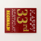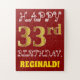 Cette conception amusante et simple de puzzle d'anniversaire comprend le message "HAPPY 33rd BIRTHDAY", avec le "33rd" ayant une apparence de couleur fausse/imitation or. Il porte également un nom customisé et un arrière - plan de couleur rouge. Ce pourrait être une façon amusante et spéciale de délivrer un message d'anniversaire personnalisé à quelqu'un qui célèbre son trente-troisième anniversaire. [~Z0000200]