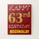 Cette conception amusante et simple de puzzle d'anniversaire comprend le message "HAPPY 63rd BIRTHDAY", avec le "63rd" ayant une apparence de couleur fausse/imitation or. Il porte également un nom personnalisé et un arrière - plan de couleur rouge. Ce pourrait être une façon amusante et spéciale de délivrer un message d'anniversaire personnalisé à quelqu'un qui célèbre son soixante-troisième anniversaire. [~Z0000200]