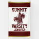 Bannière verticale orientée de pom-pom girl faite dans le blanc, avec une rayure goldtone et marron, sur le dessus et le bas. L'illustration graphique marron d'un mégaphone et des poms de pom, décorent le milieu de la bannière, avec le texte marron fait sur commande prêt à personnaliser. Les options pour les bannières d'intérieur ou les bannières extérieures avec des canons isolants est disponible.