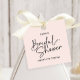 Une étiquette de faveur de mariage moderne contemporaine et simple pour votre mariage. Fond rose rouge gazon avec accent de calligraphie et deux lignes de texte personnalisé font de cette étiquette la parfaite pour vos faveurs de mariage pour vos invités à ramener chez eux.