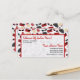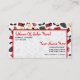 Un carte de visite de cosmetologist/salon comportant une conception d'arrière - plan comportant des illustrations des bouteilles de parfum, des bourses, des rubis, et de rétros lunettes de soleil de plot réflectorisé. La conception a un modèle de couleurs rouge. Employez de nouveau à écrivent l'information de rendez-vous.