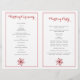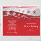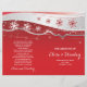 Belles rangées de flocons de neige rouges et blancs et étoiles gris argent plié cérémonie mariage et programme de fête affichant une bande ondulée avec des flocons de neige en rouge et blanc et gris argent étoiles sur arrière - plan rouge. C'est un choix idéal pour un mariage d'hiver ou de Noël en décembre. Plier en deux pour avoir un programme de mariage plié. Le type de papier de valeur se plie bien, donc choisissez seulement cela.
