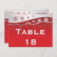 Carte postale rouge, gris argenté, blanc flocon de neige numéro de table de mariage d'hiver, avec une bande ondulée en gris argent avec étoiles et rouge élégants flocons de neige sur arrière - plan rouge brillant dégradé. Moderne et contemporain mais adapté pour un mariage traditionnel. Ce design élégant, élégant et élégant peut être utilisé pour d'autres occasions spéciales comme des fiançailles ou des anniversaires. Un choix parfait pour les mariages d'hiver, de décembre ou de Noël.