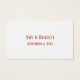 Vous voulez offrir à vos invités un moyen de profiter de plusieurs boissons alcoolisées pendant votre réception ou votre fête sans avoir à vous engager dans un open bar? Ces billets à boire à 3 punch pourraient être idéaux pour vous ! Dans une jolie police de caractères rouge cerise, le message avant dit "Bravo du couple heureux". Le texte est modifiable, si vous souhaitez qu'un message différent soit imprimé sur le devant. Rotation, à droite et placé entre des lignes rouges minces sont les mots "Rééchanger à la barre"; ce texte est également modifiable. Trois cercles numérotés ont été ajoutés à droite pour que vos invités puissent se faire perforer leur carte au bar, qui peut servir jusqu'à trois boissons complémentaires. L'autre côté a des champs modèles configurés pour vos noms et votre date. Une douce alternative à la barre ouverte. Conçu par Melody Watson pour Paper Muserie.
