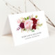 Cette carte de remerciement rouge tropical et romantique est parfaite pour un mariage simple. Le design artistique bordo marsala présente des roses vertes, roses, bordeaux et blush à l'aquarelle, assorties de verdure, soigneusement disposées dans un bouquet de fleurs gracieux et radieux.