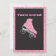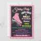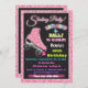 Lueur superbe d'amusement dans les invitations foncées de fête d'anniversaire de patinage de rouleau de disco. Comporte un raie de rouleau de paillette de faux et un pensionnaire et une typographie roses rougeoyants d'amusement. Illustration tirée par la main par McBooboo. Veuillez me contacter avec tous problèmes, changements ou quelque chose faits sur commande ! Ceux-ci ne rougeoient pas dans l'obscurité.