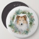 Rough Collie Christmas Wreath Button