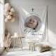 Modernes, minimalistisches Taufdesign mit einem runden Foto und dem Wort "Taufe" in einem kalligraphischen Schriftart. Bitte beachten Sie, dass Sie das Wort "Taufe" nicht ändern können, aber Sie können alle anderen Texte in diesem Design bearbeiten.