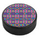 Round object with a vibrant geometric pattern eishockey puck